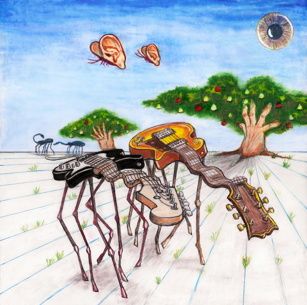 Dali-esque Guitars. Prismacolor pencil on frosted drafting film. Created as a gift.