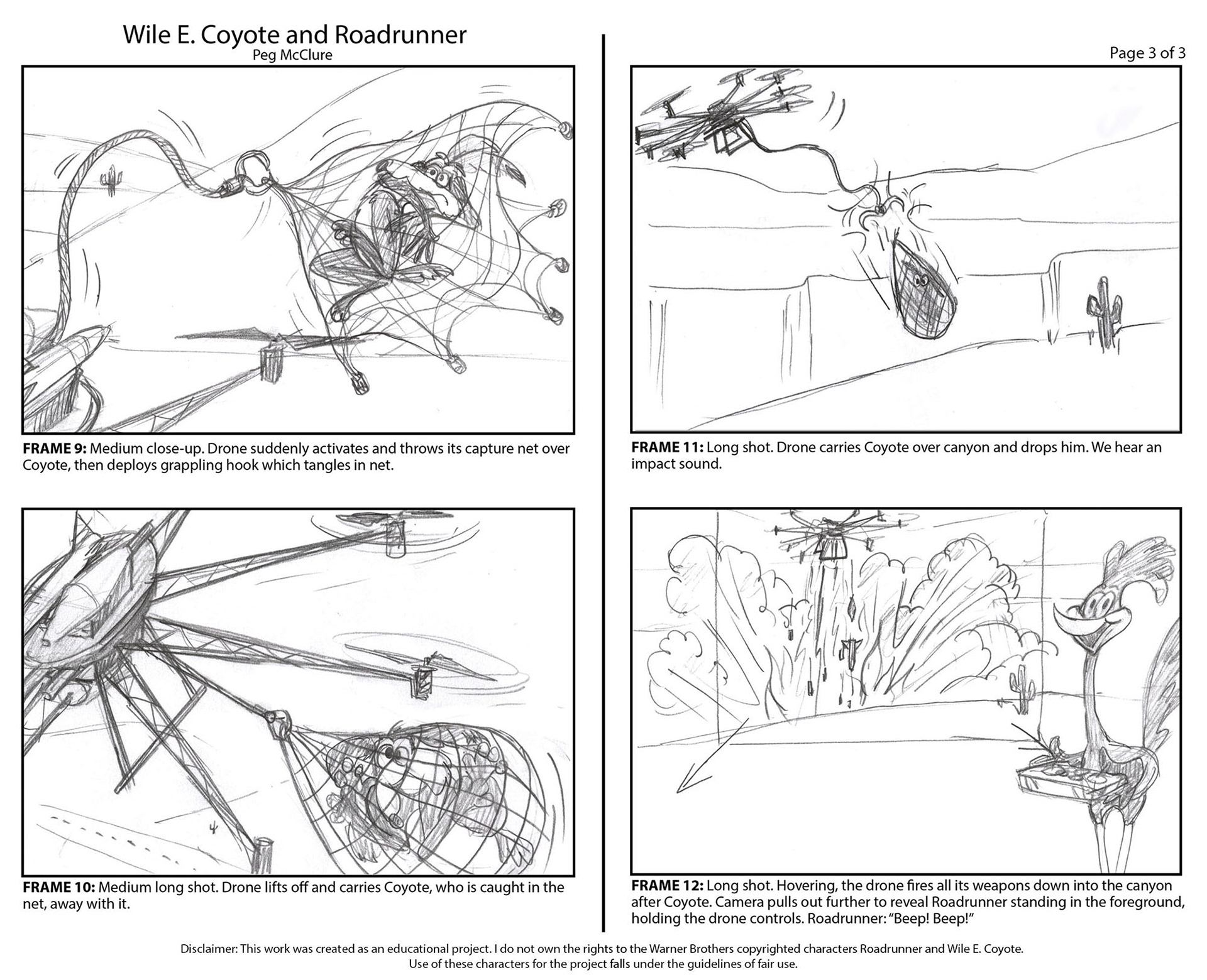 Project: "Wile E. Coyote". Create concept and 12-frame storyboard for a 30-second animated Wile E. Coyote & Roadrunner gag.